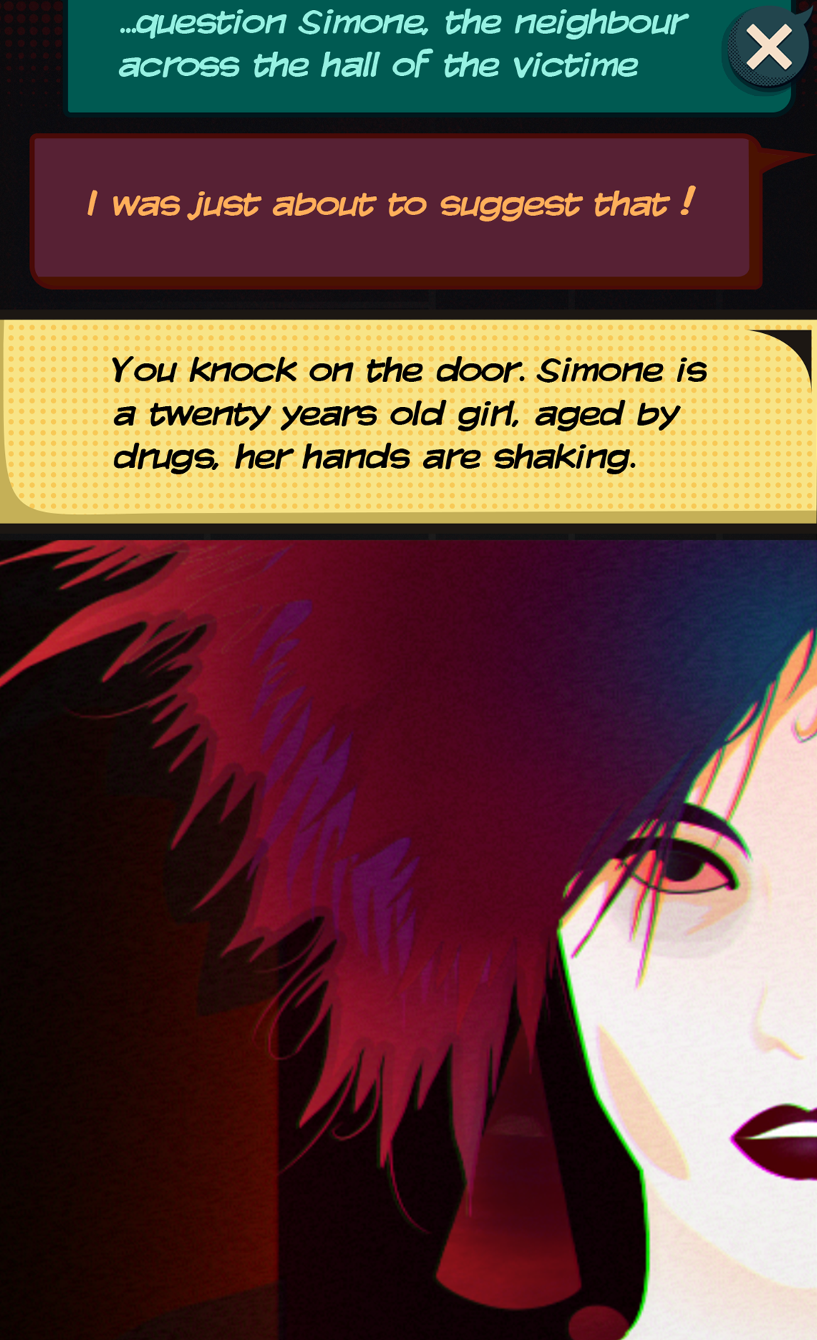 - Cooperation: Both players decide the direction the story will take -- you don't always need to agree with your partner. How will you choose to pursue the case?